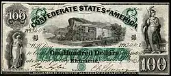 Avers des billets de 5 et 100 $ confédérés. | |