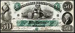 - ↑ « Type 8 confederate money 50.00 George Washington scarce Choice Unc », Deerrunmercantile.com (consulté le )