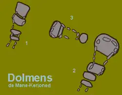 - ↑ « Tumulus à trois dolmens de Mané-Kérioned », notice no PA00091134, sur la plateforme ouverte du patrimoine, base Mérimée, ministère français de la Culture