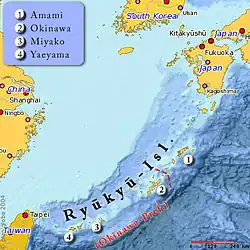 - ↑ Parfois traduit par « province de Ryūkyū », bien que « province » au Japon est généralement une traduction de kuni dans l'usage courant.