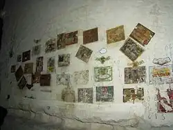 Au fil du temps divers auteurs, le plus souvent anonymes, ont « décoré » les piliers en place dans la carrière : comptes de carriers, dessins humoristiques ou vulgaires, maximes, etc. mais aussi collages (étiquettes de vins bus par les carriers). L'ensemble représente un intéressant patrimoine de la vie de la carrière.