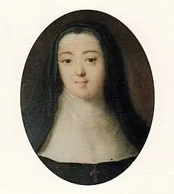 Le 17 mai 1763, le mariage du marquis et de Renée-Pélagie, fille aînée de Cordier de Montreuil, président honoraire[N 6] à la cour des Aides de Paris, de petite noblesse de robe, mais dont la fortune dépasse largement celle des Sade, est célébré à Paris en l'église Saint-Roch. Les conditions financières ont été âprement négociées par le comte de Sade et la présidente de Montreuil[18], femme énergique et autoritaire. Il n'existe pas de portrait de Renée-Pélagie qui manque peut-être d'agréments. Le comte de Sade, la voyant pour la première fois, la décrit ainsi à sa sœur :