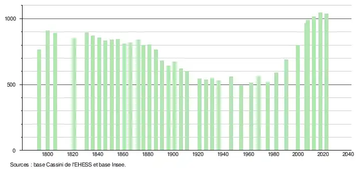 - ↑ Population municipale de référence en vigueur au 1er janvier 2025, millésimée 2022, définie dans les limites territoriales en vigueur au 1er janvier 2024, date de référence statistique : 1er janvier 2022.