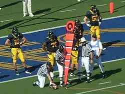 Un down commence avec un kickoff ou un snap, et se termine lorsqu'un arbitre déclare l'action terminée.