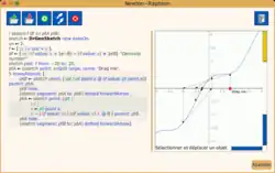 Une figure Smalltalk permet de coder un modèle interactif d'un algorithme. Ci-dessous une méthode célèbre d'analyse numérique, la méthode Newton-Raphson dans une itération de cinq pas.