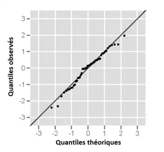 On compare donc les valeurs des quantiles de la loi empirique (xi) aux quantiles de la loi normale centrée réduite ti.