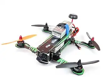 Le logiciel de contrôle peut être pour les drones de course, Betaflight, un logiciel libre (sous licence GPLv3[9]) spécialisé, dérivé de Cleanflight. Ils ont généralement la capacité de surimposer un OSD à la vidéo.