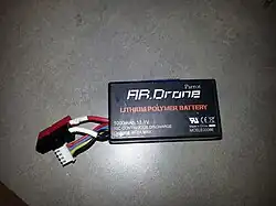 Les batteries utilisent généralement des accumulateurs de type Li-Po (lithium-ion polymère). Selon les types d'engins, les batteries sont orientées vers plus d'autonomie (la majorité des cas), ou une plus forte puissance instantanée (drones de course). Un circuit intégré à la batterie permettent de connaître l'autonomie restante et transmettent cette information au contrôleur de vol, afin que le drone puisse se poser en douceur avant qu'elles ne soient complètement vidées.