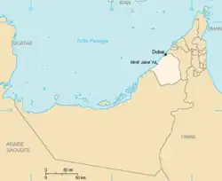 Localisation de l'émirat de Dubaï en rouge. | ||
