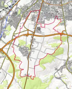 L'occupation des sols de la commune, telle qu'elle ressort de la base de données européenne d'occupation biophysique des sols Corine Land Cover (CLC), est marquée par l'importance des territoires agricoles (70,4 % en 2018), en diminution par rapport à 1990 (72,1 %). La répartition détaillée en 2018 est la suivante : terres arables (69,5 %), zones industrielles ou commerciales et réseaux de communication (11 %), zones urbanisées (8,5 %), forêts (7,8 %), milieux à végétation arbustive et/ou herbacée (2,1 %), zones agricoles hétérogènes (0,9 %), espaces verts artificialisés, non agricoles (0,1 %)[16]. L'évolution de l'occupation des sols de la commune et de ses infrastructures peut être observée sur les différentes représentations cartographiques du territoire : la carte de Cassini (XVIIIe siècle), la carte d'état-major (1820-1866) et les cartes ou photos aériennes de l'IGN pour la période actuelle (1950 à aujourd'hui)[Carte 2].
