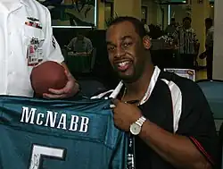 - ↑ (en-US) « Off The Beat: Jerseys? Sure! », sur www.philadelphiaeagles.com (consulté le )