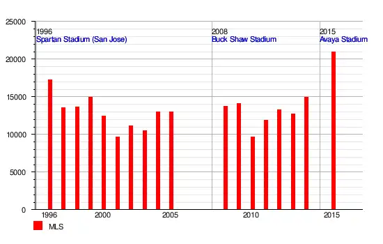 - Stanford Stadium (depuis 2011 : un match par saison vers le 4 juillet)