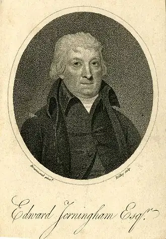 Edward Jerningham est poète dramatique anglais, d'une famille catholique du Norfolk, né en 1727, mort le à Londres. Il fut élevé au collège anglais de Douai, puis à Paris, et entra dans l’Église.