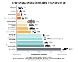 Pour tenir compte de la finalité des transports, qui est avant tout de transporter des personnes ou du fret, les statisticiens rapportent l'efficacité énergétique à la charge utile et à la distance, en kWh/100 voyageur-kilomètre (ou passager-kilomètre[7]), aussi notés kWh/100 pkm. Pour le fret, on parle de kWh/100 tonne-kilomètre, aussi notés kWh/100 tkm.
