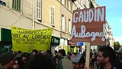 - Un collectif de personnalités demande au ministre du logement et au préfet des Bouches-du-Rhône l’organisation d’une conférence citoyenne pour répondre à l’urgence du mal-logement et la mise en œuvre d'une opération d’intérêt national pour éradiquer le mal-logement à Marseille[339],[340]. Noureddine Abouakil, cofondateur de l’association Un centre-ville pour tous, explique qu'il est en effet nécessaire de donner la maîtrise de la politique d'urbanisme à l’État plutôt qu'à la ville: celle-ci se trouve en conflit d’intérêts, ayant comme seul objectif la gentrification du centre-ville[334]. Un autre collectif de personnalités civiles et politiques demande à l'état de placer la ville sous tutelle préfectorale[341].