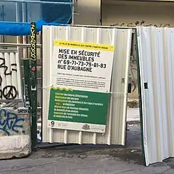 Or, les arrêtés de péril, et plus généralement les politiques urbaines[6], relèvent de la compétence de la mairie[29],[30], qui doit ordonner au propriétaire de faire des travaux d’urgence ou procéder à l’exécution d’office des travaux prescrits. Le magazine Capital relève que quelques semaines avant l'accident, le tribunal administratif de Marseille avait rappelé à la municipalité ses obligations de procéder à l’exécution d’office de travaux dans le cas d'un arrêté de péril imminent datant de 2011[31]. La ville avait débloqué en 2014 pour une durée de 4 ans 2 millions d'euros pour des opérations liées à la rénovation de l'habitat insalubre (avec pour objectif « d’aider à l’application de procédures coercitives en accompagnant les services de la ville de Marseille dans le suivi des dossiers »), mais n'en a consommé qu'une toute petite partie[25]; cette information contredit les affirmations de la municipalité selon lesquelles « [ces travaux d’office] sont des dossiers très compliqués à monter juridiquement. [Mais] avant le drame de la rue d’Aubagne, on n’avait pas de juriste dédié à ça. »[32],[33],[34],[35]. D'autres immeubles que ceux de la rue d'Aubagne sont évacués avant le : rue Saint-Pierre le , rue Rodolphe-Pollak le , rue Tapis-vert du 13 juin; leurs habitants étaient encore logés à l'hôtel début mars 2019[36].