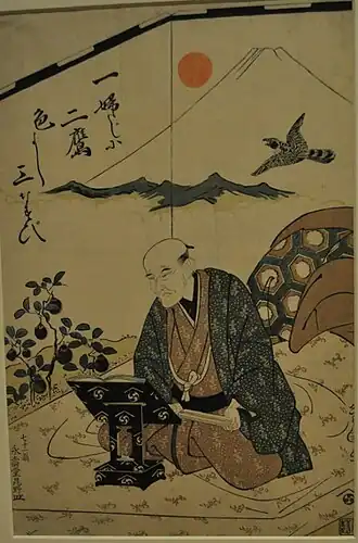 - (en) Ichi fuji ni taka san nasubi estampe de Kitagawa Utamaro c. 1798-1801