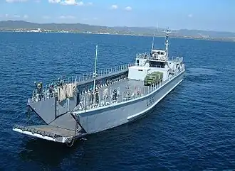 Au large, le transfert de troupes et de matériel est également possible depuis des LST, (ou des LSD et LHD «non enradiés») sur des chalands ou engins de débarquement. On parle alors de transfert de porte à porte.