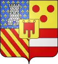 Écartelé : au 1, d’azur semé de fleurs de lys d’or à la tour d’argent brochant qui est La Tour ; au 2, d’or aux trois tourteaux de gueules, qui est Boulogne, au 3, coticé d’or et de gueules qui est Turenne ; au 4, de gueules à la fasce d’argent qui est Bouillon ; sur le tout d’or au gonfanon de gueules frangé de sinople Auvergne.[7]