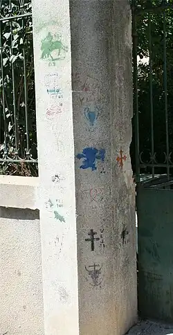 Villetelle. Trois empègues sur le montant droit de la porte d'entrée d'une maison.