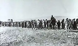 Cependant, le blocus mis en place par les Alliés créent les conditions d'une sévère famine parmi les populations de l'empire, dans les principales villes de l'empire, Istanbul, Smyrne, ou dans les villes du Liban[52] ; cette famine se fait cruellement sentir durant la seconde moitié du conflit, à partir de 1916[47]. Ainsi en 1917, la situation est si dramatique que le gouverneur ottoman siégeant à Beyrouth supplie le patriarche maronite d'intervenir auprès du Pape afin de faciliter le ravitaillement, sans succès[53]. Au terme du conflit, les experts militaires alliés estiment que cette famine a coûté la vie à près d'un million de civils, pour moitié musulmans, pour moitié non musulmans[47].