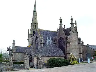 Plan de l'enclos en 1811. L'ossuaire, détruit en 1920, est visible au sud-ouest. La sacristie est visible au sud-est de l'église.