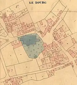 Plan de l'enclos en 1837. L'ancien ossuaire, détruit, est visible au sud de l'enclos.
