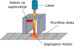 Au cours du temps, différentes technologies se sont succédé pour permettre d'augmenter la capacité des disques durs telles que l'enregistrement perpendiculaire (PMR) et l'enregistrement à bardeau (SMR), cependant ces technologies se sont toutes heurté à une limite technique due à la stabilité magnétique des matériaux employés. En effet, pour augmenter la capacité des disques durs, augmenter la densité de stockage par plateau en écrivant des cellules plus petites est essentiel. Cependant, les cellules plus petites sont également plus instables et risquent de changer d'orientation magnétique. Pour éviter ce phénomène, des matériaux avec un champ coercitif (c'est-à-dire la capacité à résister à un champ magnétique) plus élevé sont utilisés, par exemple un alliage fer-platine (FePt)[3]. Cela permet aux cellules de rester stable dans le temps, cependant les têtes d’écritures doivent fournir un champ magnétique plus fort pour pouvoir changer l'orientation magnétique d'une cellule, en pratique, il existe une limite à la force des champs magnétiques que peut produire une tête d'écriture. Cela provoque une situation où il est impossible pour le disque de fonctionner correctement car il lui est impossible d'écrire correctement les données. Les disques HAMR utilisent un propriété particulière des matériaux magnétiques pour contourner cette limite, en effet, le champ coercitif d'un objet dépend de sa température. Par exemple, lorsqu'un objet atteint sa température curie, ses propriétés magnétiques disparaissent. Ici, les têtes d’écritures chauffent le substrat grâce à un laser à une température de plus de 400 °C[3], abaissant le champ coercitif de la cellule puis écrivent immédiatement après des données dans la cellule, enfin le substrat se refroidit, garantissant la stabilité de la cellule. L'opération prend moins d'1 ns et consomme autant d'énergie que les technologies traditionnelles[4] étant donné que la tête ne chauffe qu'une infime surface. Les défis techniques nécessaire pour mettre en œuvre cette technologie sont relevés par des nanostructures spécifiques : des optiques de champ proches et des plasmon de surface localisé guident la lumière du laser jusqu’à la cellule à une échelle inférieure à celle de la longueur d'onde du laser pour pouvoir chauffer de manière localisée le substrat. Enfin, le substrat est composé de verre pour garantir le dépôt d'un revêtement spécifique appliqué pour supporter les températures importantes et contrôler le mouvement de la chaleur.
