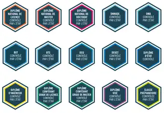 Labels des formations contrôlées par l'État et le ministère de l'Enseignement supérieur.