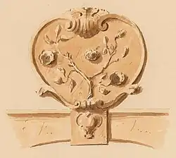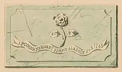 Rosier | Centre | 1766 | Bas-relief de rosier dans un cartouche surmontant la clé de la baie d'une des fenêtres du rez, elle-même décorée d'un cartouche contenant le millésime. Malgré son inscription à l'Inventaire du patrimoine immobilier culturel, la maison est démolie vers 2019. À l'époque, la clé décorée était toujours présente[12],[62]. | |||||||