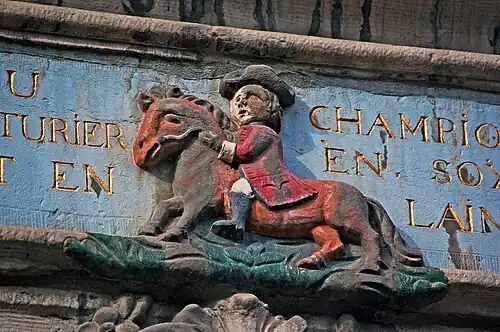 À Noir mouton (déplacée) | Saint-Léonard | 1652 | Déplacé d'un lieu inconnu et replacé au-dessus du passage d'une impasse accessible via le no 91 de la rue[4]. | |||||||||||