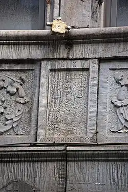 - ↑ Karin Depicker, Mikhaël de Thyse, Yves Hanosset et Cirstina Marchi, Enseignes, images de pierre, Liège, Éditions du Perron, , 128 p. (ISBN 9782871140740, lire en ligne), p. 39.