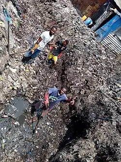 Les quelque 10 millions d’habitants de Kinshasa produisent chaque jour 7 000 tonnes de déchets, soit près de 260 kilos par habitant chaque année. La capitale a lancé, avec l'aide de l'Union Européenne, un programme de lutte contre l’insalubrité, comprenant l'inauguration d'une usine de traitement des déchets plastiques (compactage) en 2015, et l'installation de 61 stations à ordures[23]. Une partie des déchets sont enfouis dans la décharge de Mpasa, à l'extérieur de la ville[24].