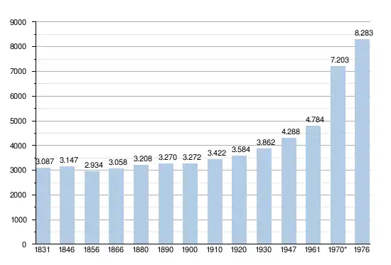 - Sources : INS, Rem. : 1831 jusqu'en 1970 = recensements, 1976 = nombre d'habitants au 31 décembre[2].