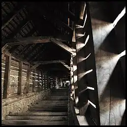 C'est un escalier à rampes de 175 marches avec une couverture en bois datant de 1642, permettant de relier les parties inférieure et supérieure de la citadelle de Sighişoara, notamment l'église Saint-Nicolas, un édifice représentatif de l’architecture gothique de Transylvanie : construite par étapes du XIVe au XVe siècle sur les vestiges d’un édifice roman, elle a adopté un plan de type halle avec une abside polygonale. La décoration sculptée de la façade témoigne d’influences provenant d’Europe centrale[1].