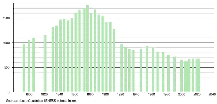 - ↑ Fiches Insee - Populations de référence de la commune pour les années 2006, 2007, 2008, 2009, 2010, 2011, 2012, 2013, 2014, 2015, 2016, 2017, 2018, 2019, 2020, 2021 et 2022.
