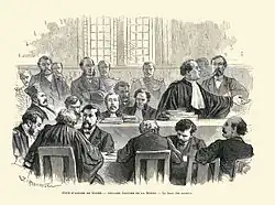 Le , il comparut devant la cour d'assises de la Seine-Inférieure. Le témoignage de Pouyer-Quertier, alors ministre des Finances, cité comme témoin à décharge, et qui déclara légitime le système des « virements de fonds », fit acquitter l'accusé, mais les théories de Pouyer-Quertier provoquèrent à l'Assemblée nationale et au conseil général de l'Eure de telles protestations que le ministre des Finances dut démissionner[3].