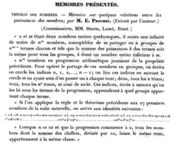 « Prouhet's note is no more than an "Extrait par l'auteur" of a "Mémoire présenté" to the Academy. The secretaire-archiviste of the Academy was kind enough to inform me that the memoir was returned to the author in 1852. But there appears to be no trace in the literature of its publication. »