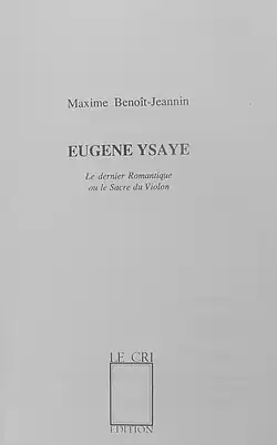 - Maxime-Benoît Jeannin, Eugène Ysaye : Le dernier romantique ou Le sacre du violon, Bruxelles : Le Cri, 1989 (ISBN 2-87106-021-5)