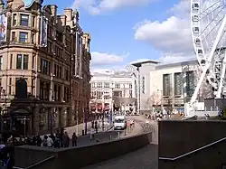 Aujourd'hui la place est une zone très importante pour le shopping, avec un magasin Selfridges, le centre commercial The Triangle, une nouvelle entrée du centre commercial Manchester Arndale, le plus grand magasin Next du monde, the Printworks, et de nombreux pubs.