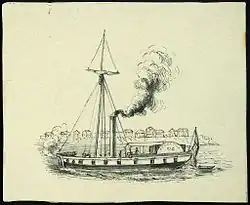 Le major Long prévoit immédiatement la construction d'un bateau à vapeur expérimental pour transporter le groupe de travail des scientifiques aussi loin que possible dans l'aventure. Nommé Western Engineer, il a été conçu de manière unique pour naviguer dans les canaux étroits, peu profonds et jonchés de la rivière Missouri et de ses affluents, avec un moteur particulièrement puissant pour une puissance accrue contre les courants rapides. Une autre nouveauté était une roue à aubes intégrée à la poupe pour réduire le risque de dommages causés par les bois morts[7]. Le navire a été lancé à Pittsburgh, en Pennsylvanie, à l'hiver 1818-1819, et était probablement le premier bateau à aubes à roue arrière jamais construit[8].