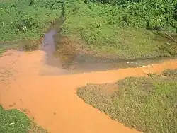 Le Parc national du sud de la Guyane (ou Parc national amazonien de Guyane)[22] lui-même n'a pas échappé à l'orpaillage illégal. L'Office national des forêts a estimé fin 2005 qu'en Guyane 1 333 kilomètres de cours d'eau étaient directement impactés par les chantiers miniers, principalement illégaux, et 4 671 km de fleuves et rivières touchés par les pollutions, en aval de ces chantiers. De plus, selon l'ONF de 2000 à 2005, les déboisements des orpailleurs sont passés de 4 000 à près de 11 500 hectares[23].