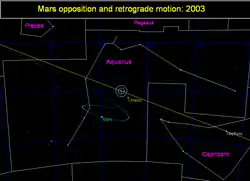 Mouvement rétrograde de Mars en 2003.