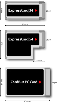 Le format ExpressCard 54 est un peu moins long que le PC Card de type II (54 × 75 × 5 millimètres contre 85,6 mm de longueur). Le format ExpressCard 34 se limite à 34 mm de largeur.