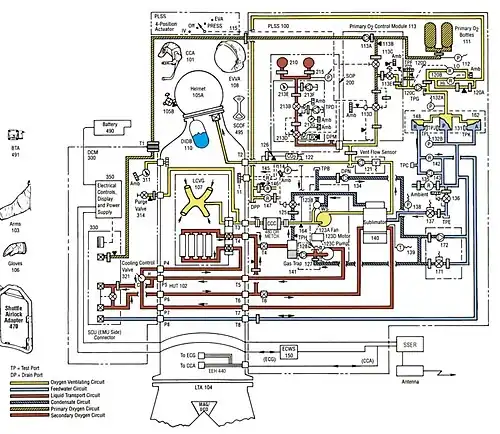 - ↑ NASA Extravehicular Mobility Unit (EMU) LSS/SSA Data Book (rev V), p. 108-109