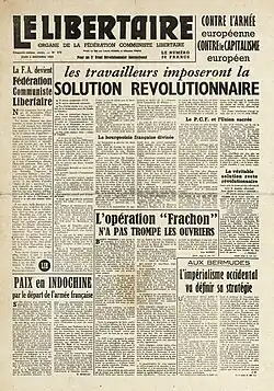 - ↑ Georges Fontenis, Changer le monde. Histoire du mouvement communiste libertaire (1945-1997), éd. Le Coquelicot/Alternative libertaire, 2000, page 128.
