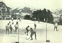 Le premier à parler de hockey sur glace en suisse est Tom Griffith, un joueur de l'équipe de football de Grasshopper Club Zurich. Il évoque un nouveau jeu en provenance du Canada à ces coéquipiers. Plutôt que d'adopter les règles canadiennes, les pionniers du hockey sur glace suisse s'orientent vers les règles anglaises et pratiquent le bandy. Le , a lieu un premier match officiel entre la Ville d'Ouchy et la Villa Longchamp se terminant sur un score final de 6-1. Sur un conseil de membres du Prince's Club London, les clubs suisses vont délaisser les règles du bandy pour celles du hockey, nécessitant une surface de jeu plus petites et moins de joueurs pour être pratiqué[2].
