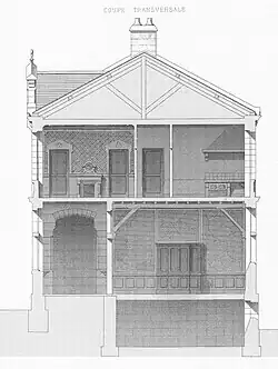 - I-II. Hôtels de ville, mairies, maisons d'école, salles d'asile, presbytères, halles et marchés, abattoirs, lavoirs, fontaines, etc. III. Architecture scolaire : écoles de hameaux, écoles mixtes, écoles de filles, écoles de garçons, groupes scolaires, salles d'asiles, écoles professionnelles, écoles normales primaires[3],[4],[5].
