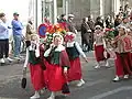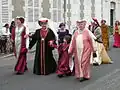 Au cours du défilé qui a lieu l'après-midi à travers la ville, des organisations de natures très diverses défilent, chacun arborant son costume de cérémonie : par exemple, parmi le groupe des universitaires, « les historiens défilent en toge jaune, les juristes en toge rouge »[19].