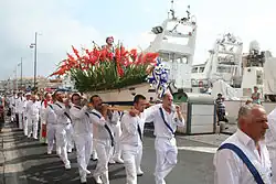 Une autre forme immémoriale de fêtes maritimes était les parades navales organisées par les escadres de guerre afin de renforcer leur prestige auprès des habitants du littoral. Il arrivait parfois que des bateaux de la Marine nationale apportent leur concours à des manifestations traditionnelles locales.